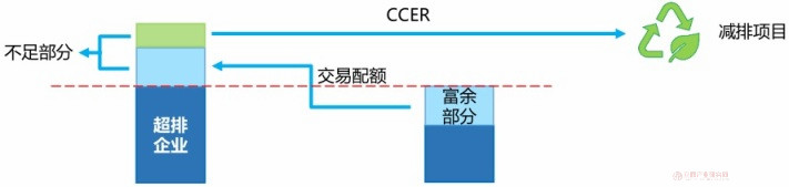 ?国家核证自愿减排量(CCER):指对我国境内可再生能源、林业碳汇、甲烷利用等项目的温室气体自主减排效果进行量化核证,并在国家温室气体自愿减排交易注册登记系统中登记的温室气体减排量,以CCER现货交易方式出售给减排企业;重点排放单位每年可以使用国家核证自愿减排量抵销碳排放配额的清缴,抵销比例不得超过应清缴碳排放配额的 5%